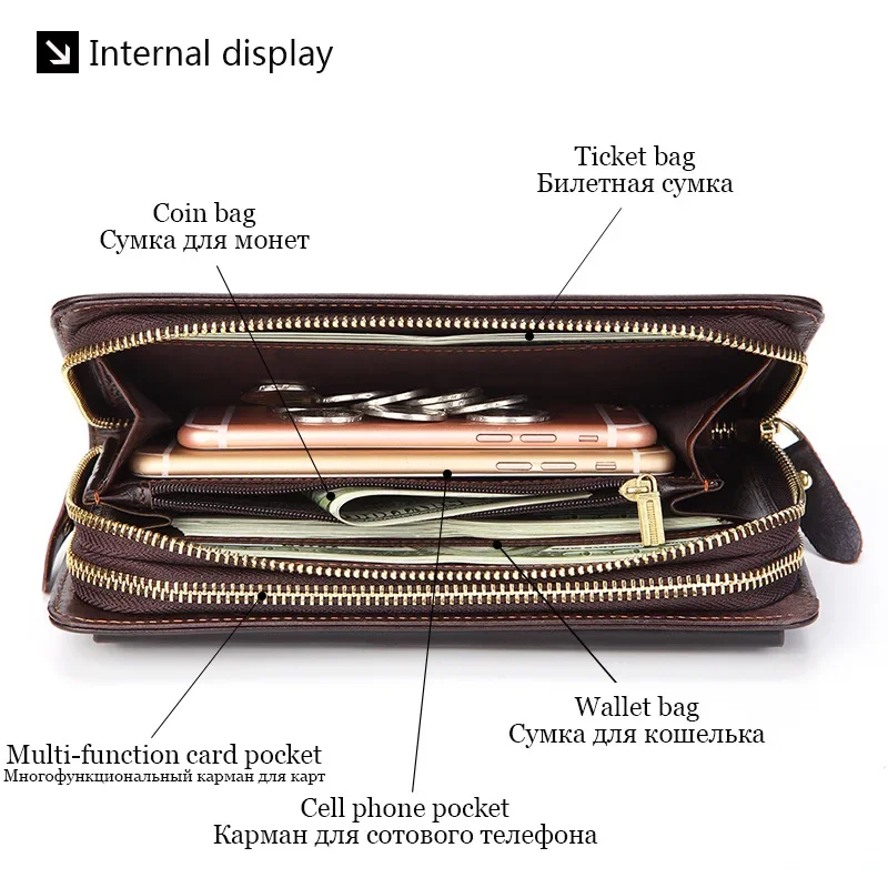 Business Genuine Leather Clutch Wallet Men Long Leather Phone Bag Purse Male Large Size Handy Coin Wallet Card Holder Money Bag