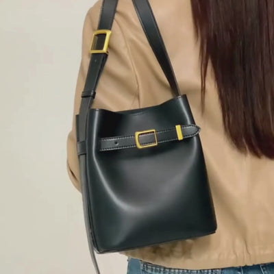 Genuine Cow Leather Bucket Bag – Vintage Shoulder Handbag