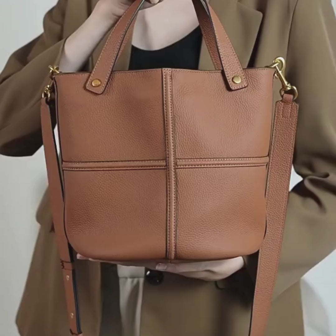 Genuine Leather Tote Bag – Large Capacity Bucket Shoulder Bag