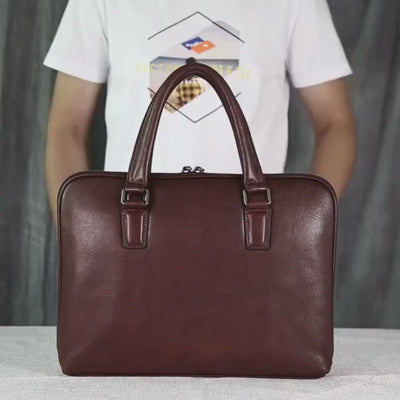 The structured silhouette offers ample space for a 14-inch laptop, documents, and daily essentials, while the smooth leather finish develops a rich patina over time. Strong handles ensure comfortable carrying, and the secure zipper closure keeps your belongings protected throughout the day.